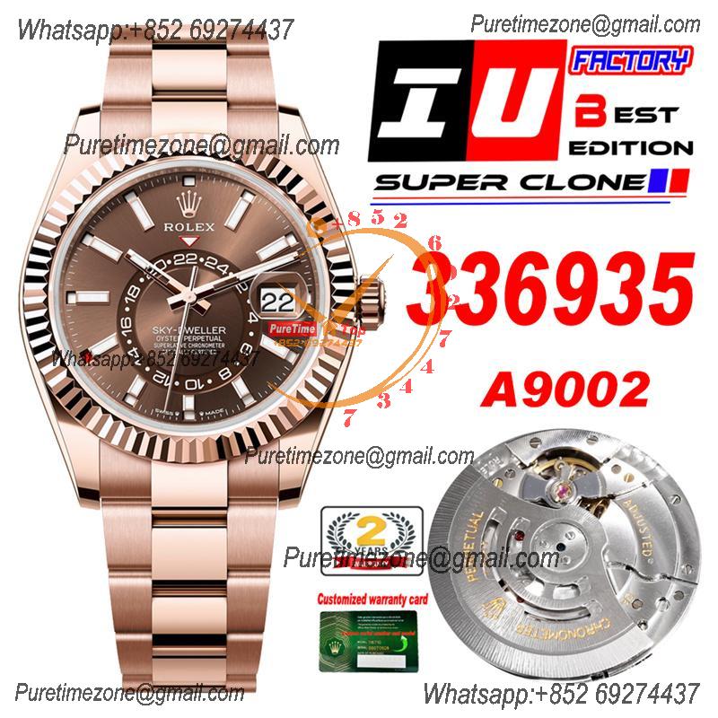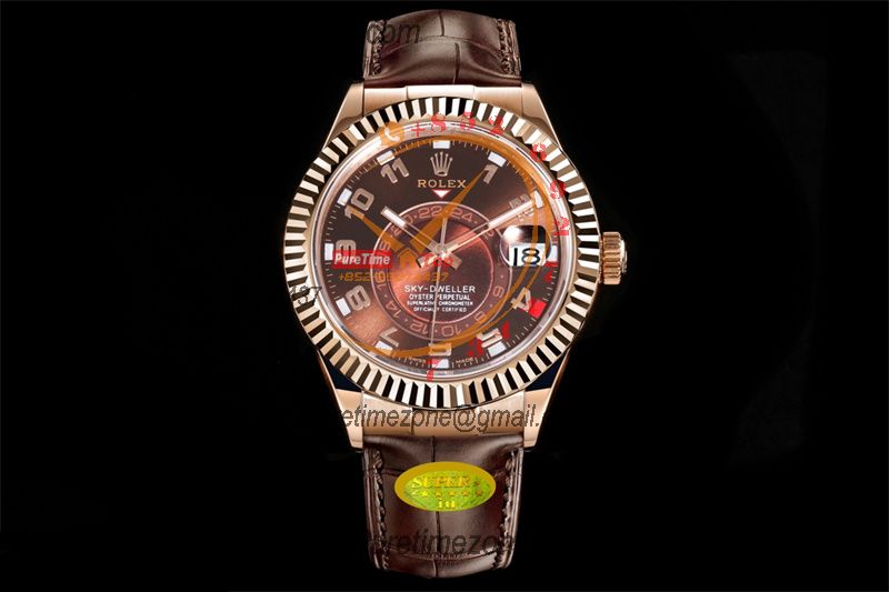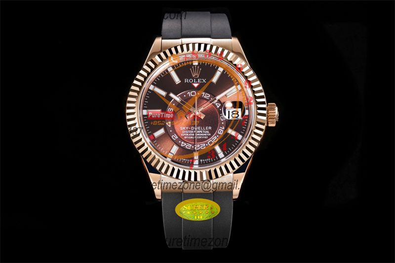Sky Dweller 326935 Gold Dial A23J Automatic Mens Watch Best Edition IUF RG Brown Dial Black Rubber Strap