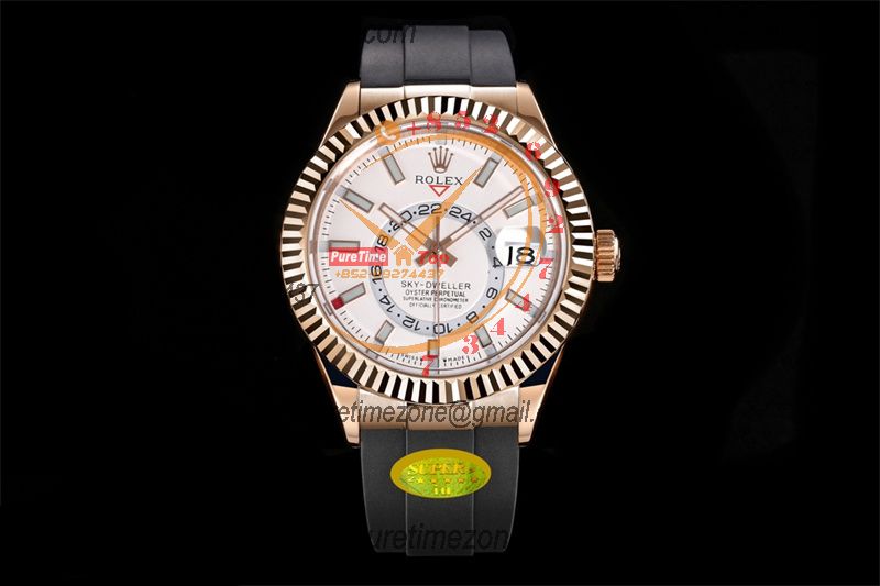 Sky Dweller 326935 Gold Dial A23J Automatic Mens Watch Best Edition IUF RG White Dial Black Rubber Strap