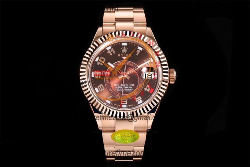 Sky Dweller 326935 Gold Dial A23J Automatic Mens Watch Best Edition IUF RG Brown Dial 904L Steel Oyster Bracelet