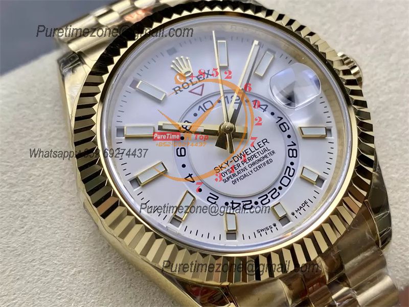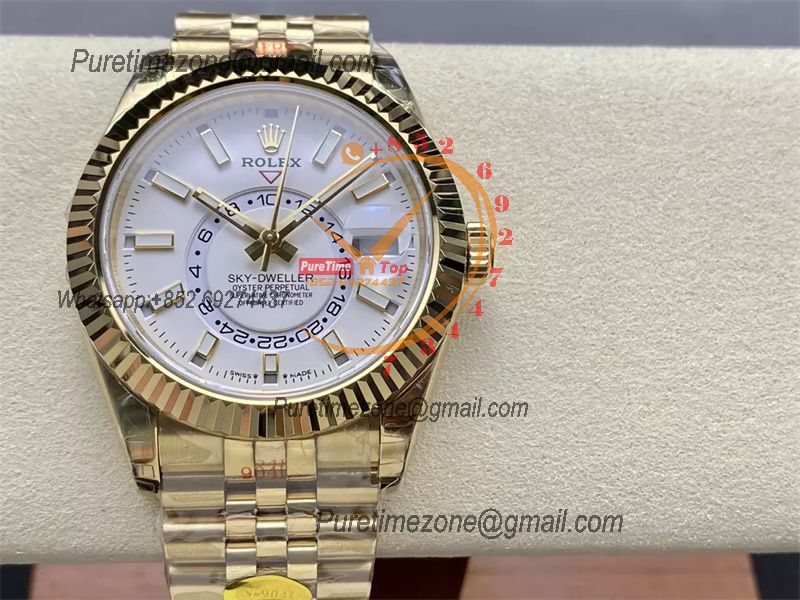 Home Rolex Sky-Dweller Sky-Dweller 326938 A9001 Automatic Mens Watch NOOB Best Edition 42 YG White Dial 904L Jubilee Steel Bracelet CHS
