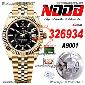 Sky-Dweller 326933 A9001 Automatic Mens Watch NOOB Best Edition 42 YG Black Dial 904L Oyster Steel Bracelet CHS