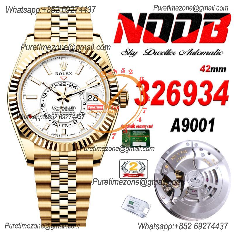 Sky-Dweller 326938 A9001 Automatic Mens Watch NOOB Best Edition 42 YG White Dial 904L Jubilee Steel Bracelet CHS