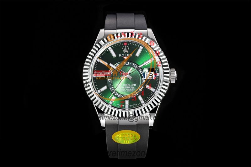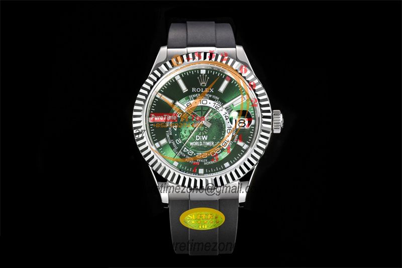 WWF Sky Dweller DIW Black PVD Fluted Bezel Green Dial A23J Automatic Mens Watch Super Clone