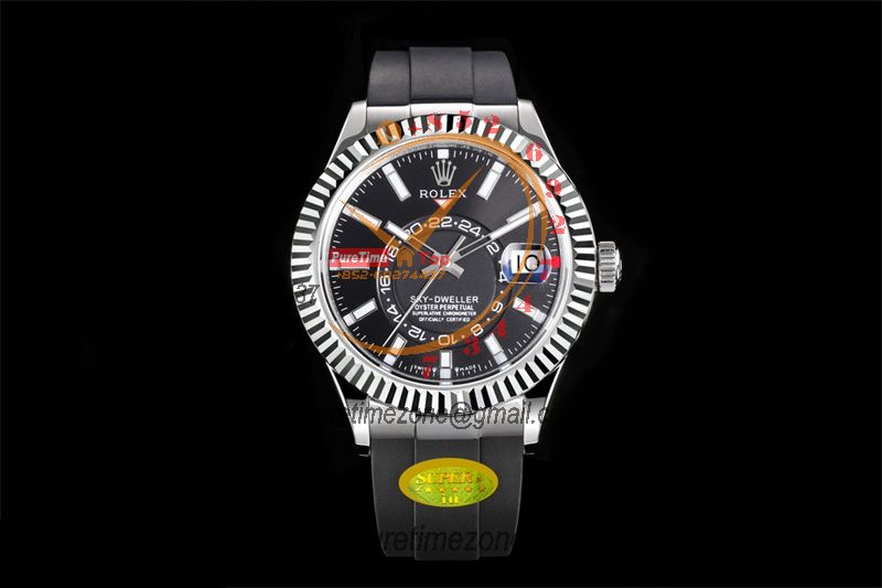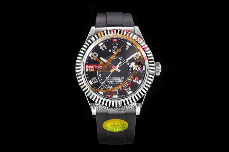 Home Rolex Sky-Dweller Sky Dweller 326939 Gold Dial A23J Automatic Mens Watch Best Edition IUF Steel Case Black Dial Rubber Strap