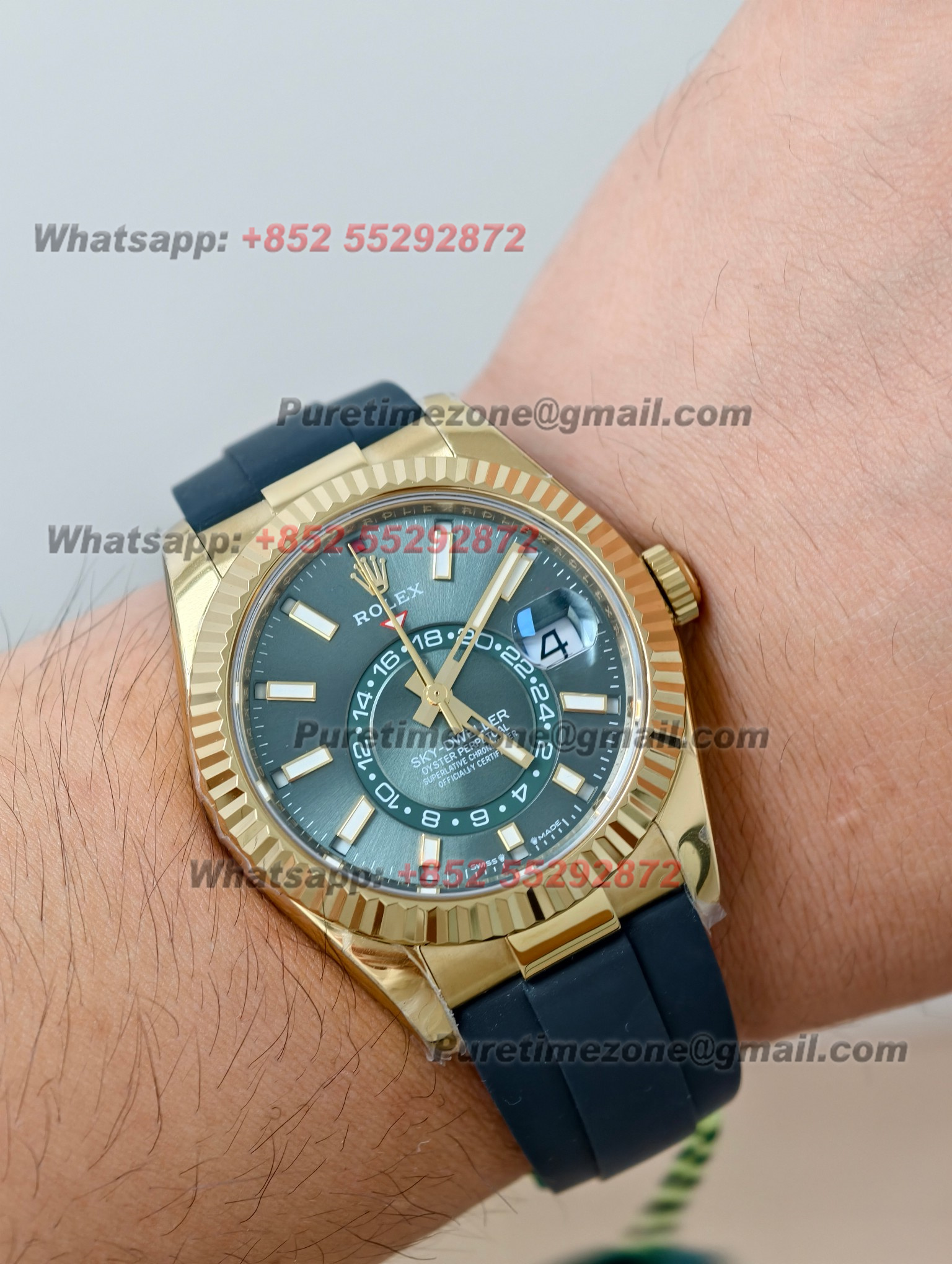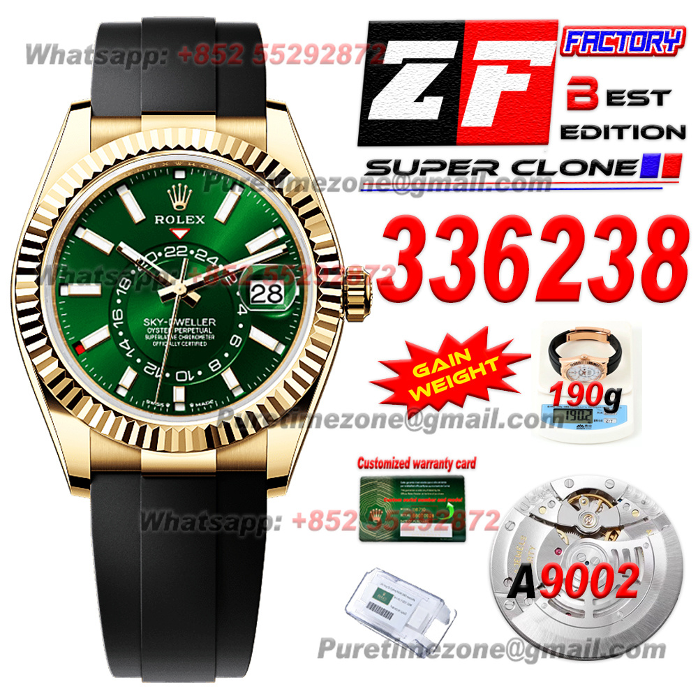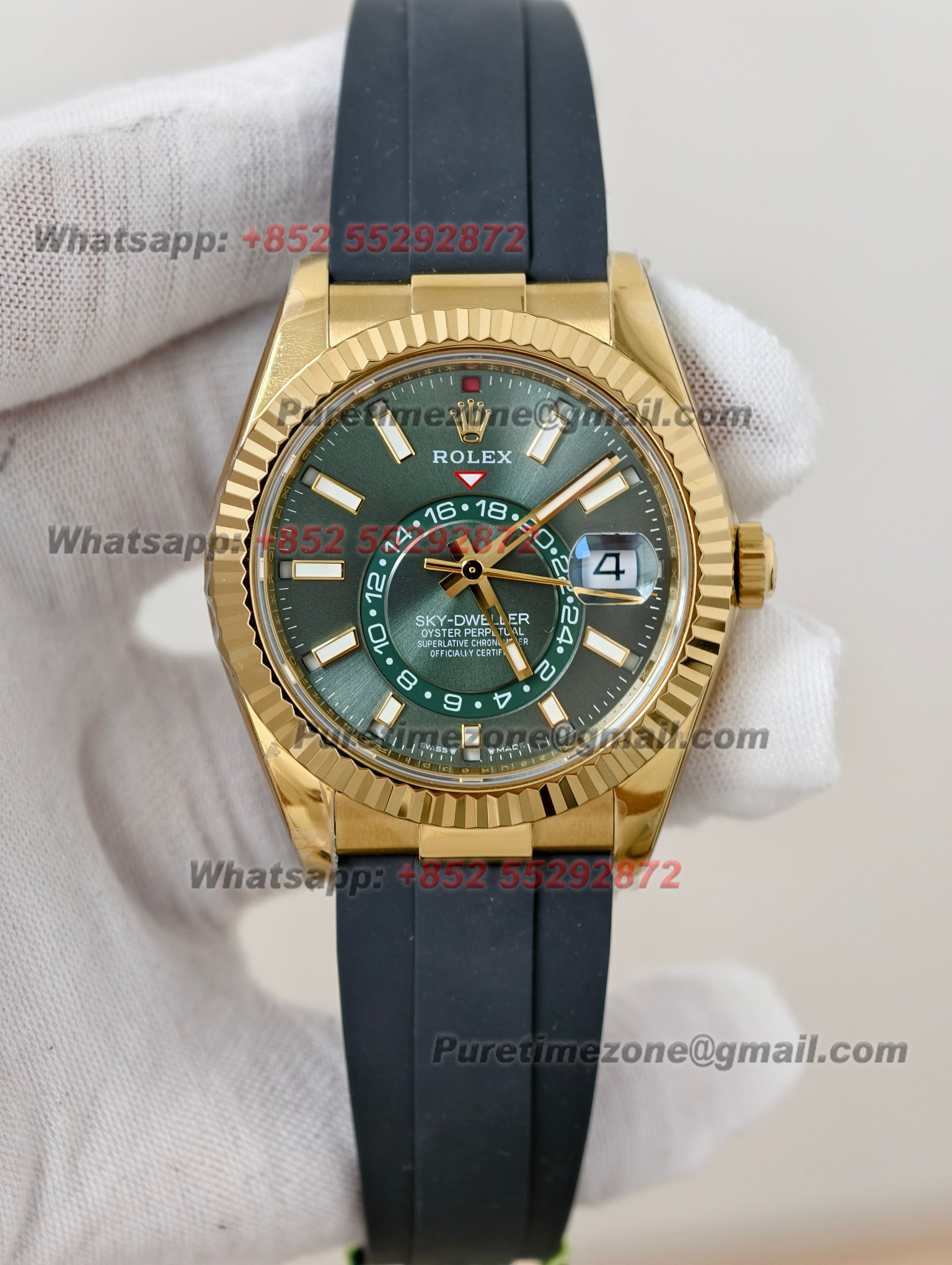 Sky-Dweller 336238 YG Automatic Mens Watch Super Clone ZF 42 Green Dial Oysterflex Strap A9002 (Gain Weight) 190G