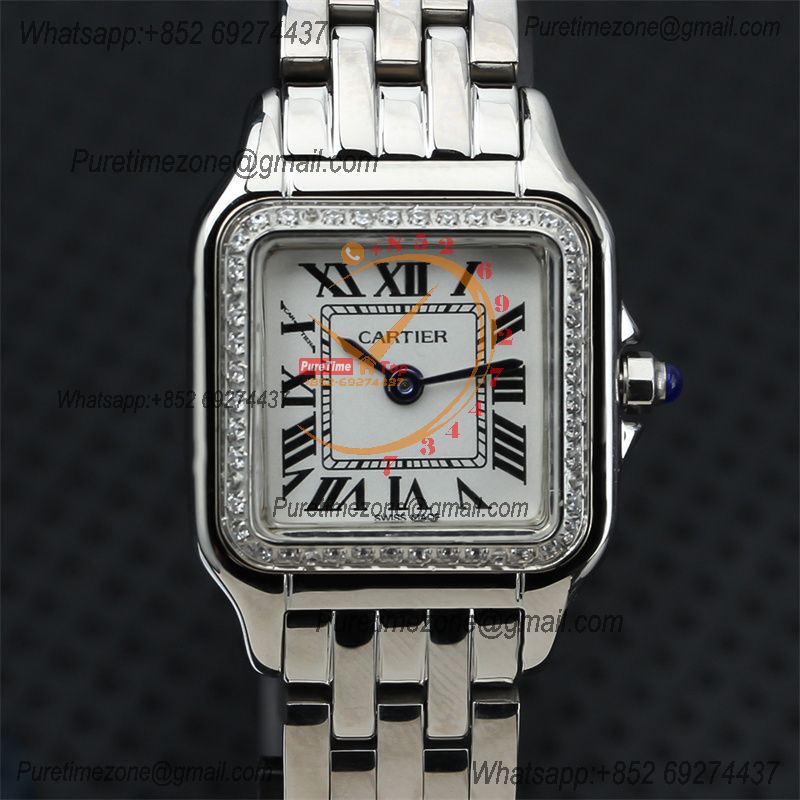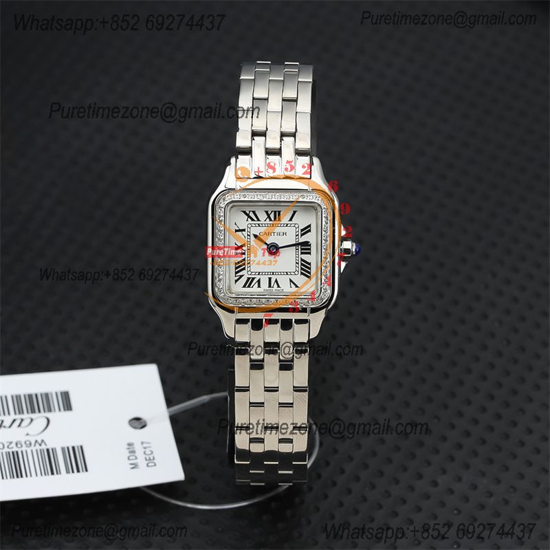 Home Special Offers Special Prices 22mm 27mm Panthère Japan Quartz Womens Watch Diamonds Bezel White Dial Stainless Steel Bracelet
