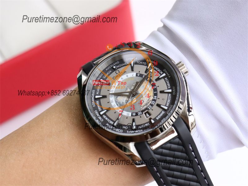 Home Special Offers Special Prices Aqua Terra 150M Worldtime A21J Automatic Mens Watch 41 SS Gray Dial Rubber Strap CHS