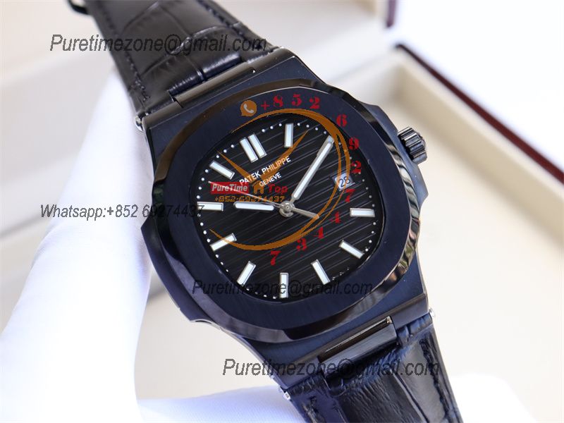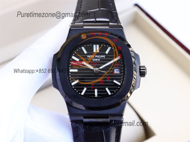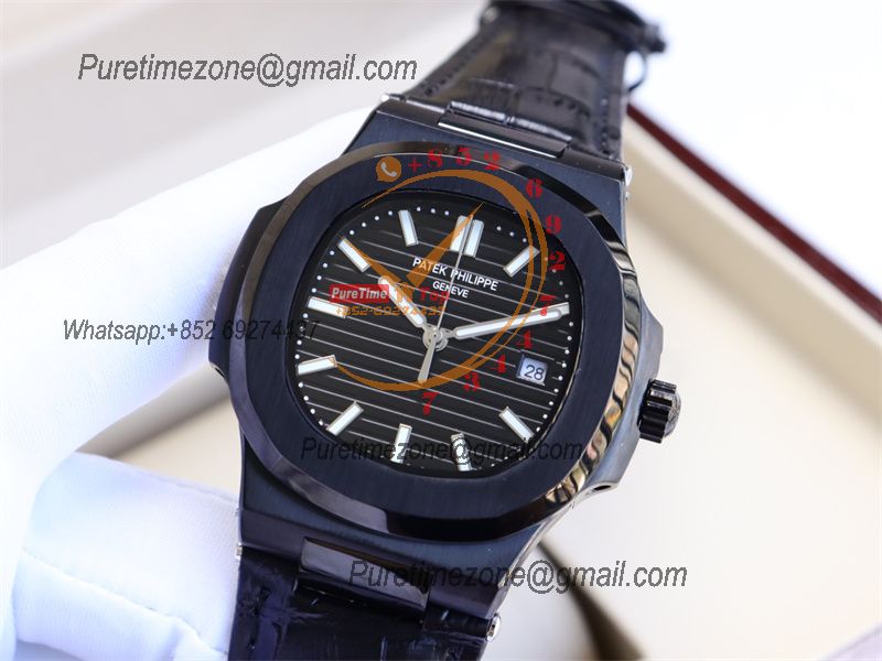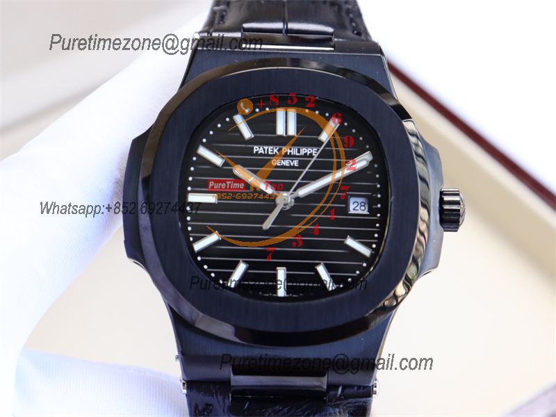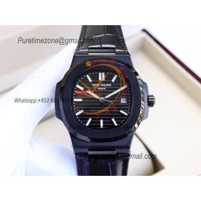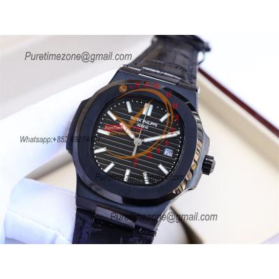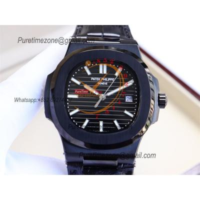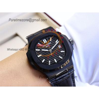 Special Prices Nautilus 5711 A21J Automatic Mens Watch 40 DLC Black Dial Leather Strap CHS