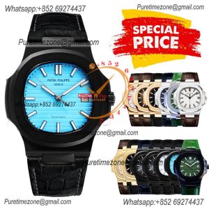 Special Prices Nautilus 5711 A21J Automatic Mens Watch 40 DLC Tiffany Blue Dial Leather Strap CHS $96.00 $80.00