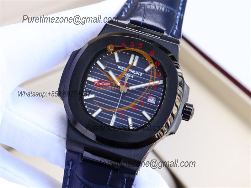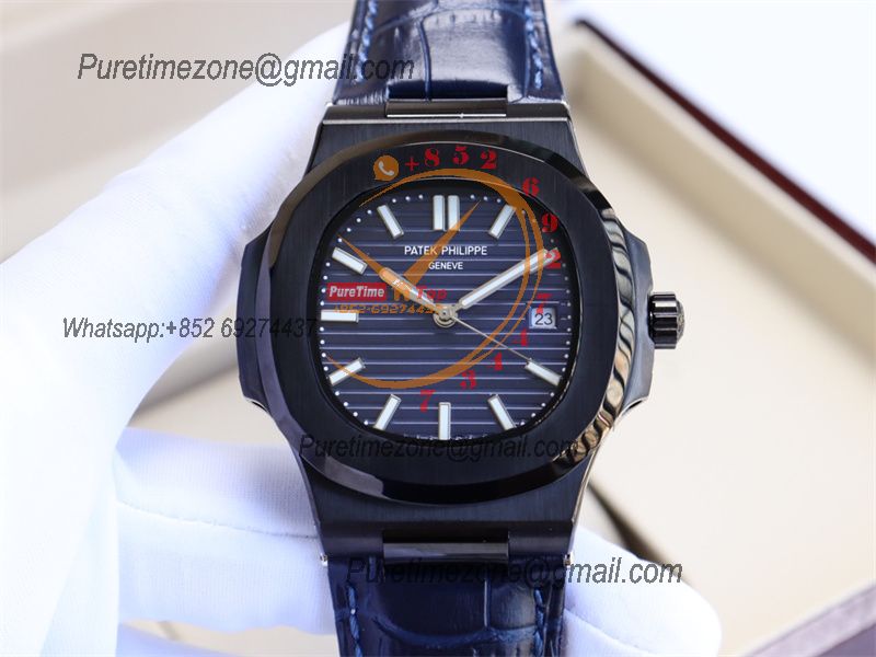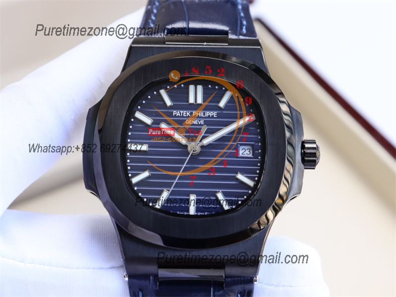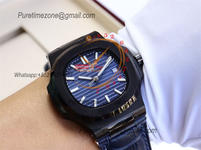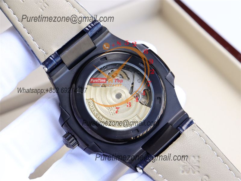 Special Prices Nautilus 5711 A21J Automatic Mens Watch 40 DLC Blue Dial Leather Strap CHS