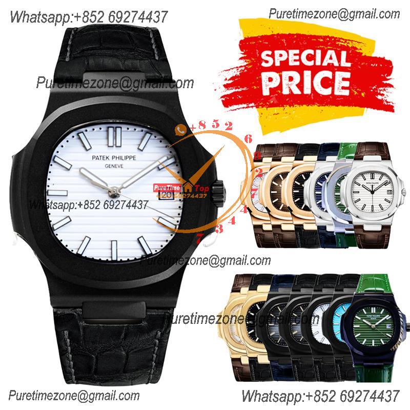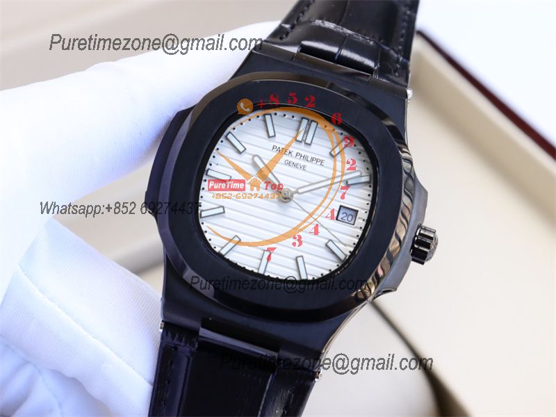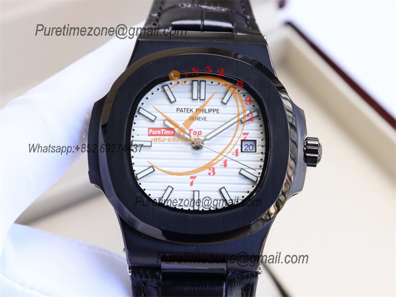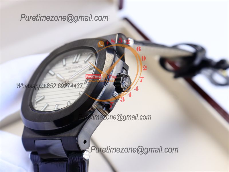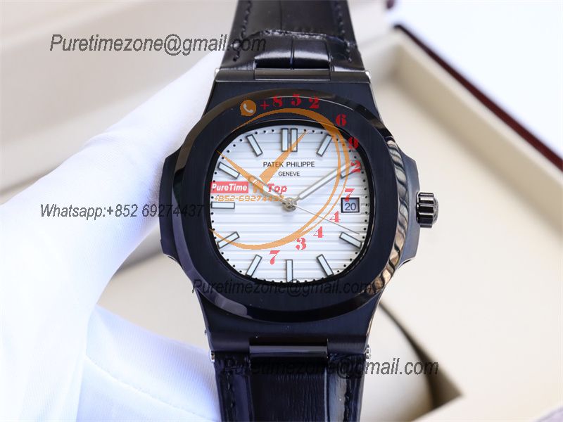 Special Prices Nautilus 5711 A21J Automatic Mens Watch 40 DLC White Dial Leather Strap CHS