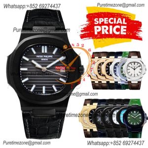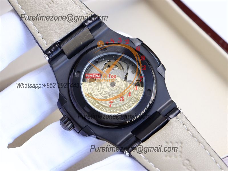 Special Prices Nautilus 5711 A21J Automatic Mens Watch 40 DLC Black Dial Leather Strap CHS $96.00 $80.00