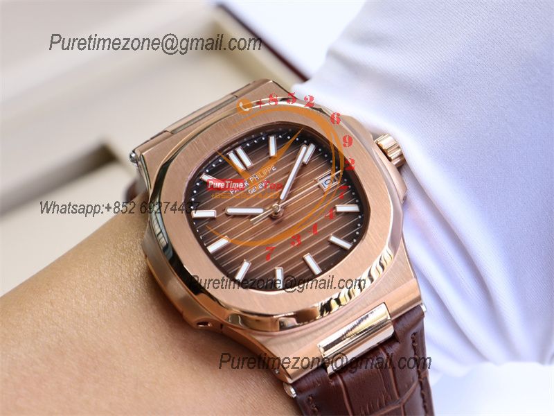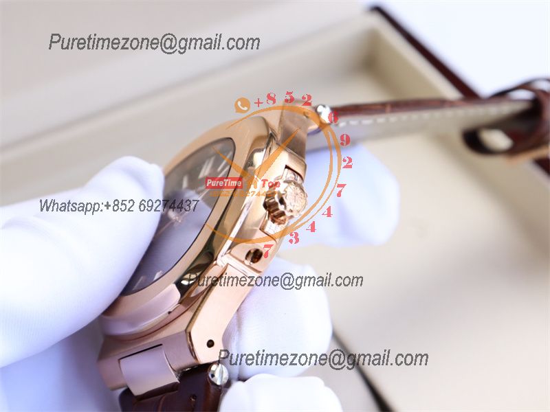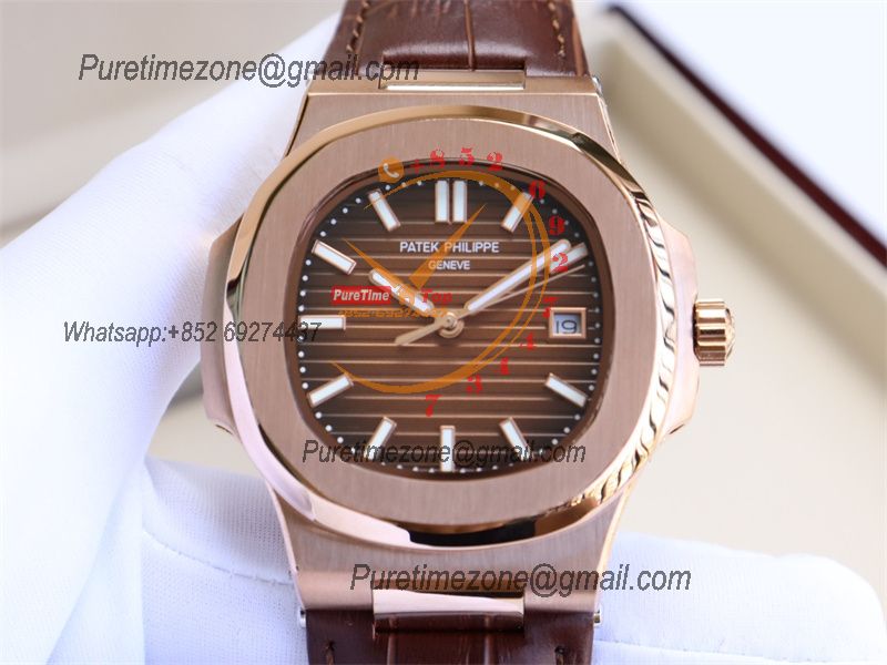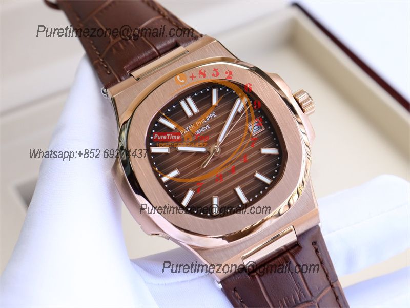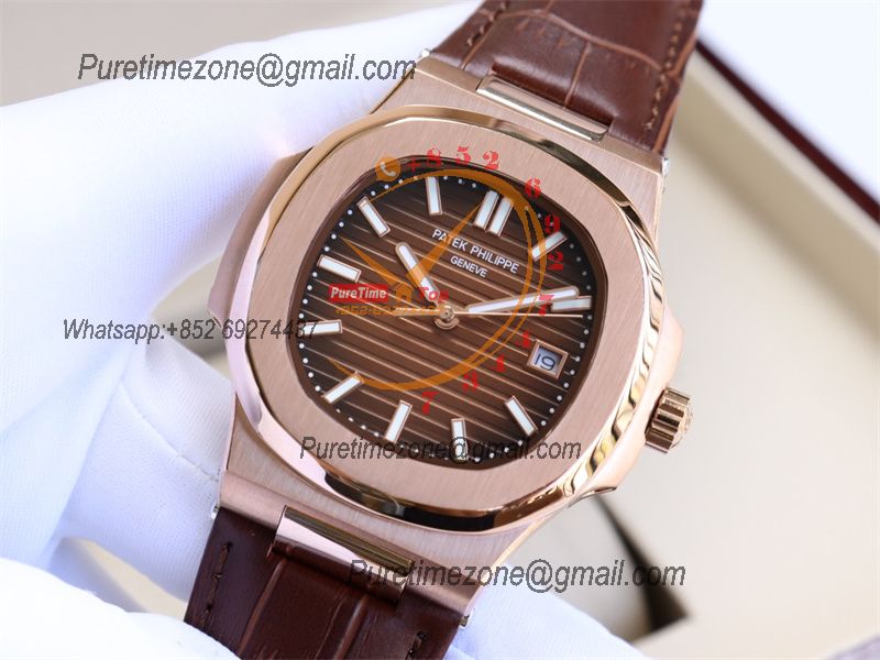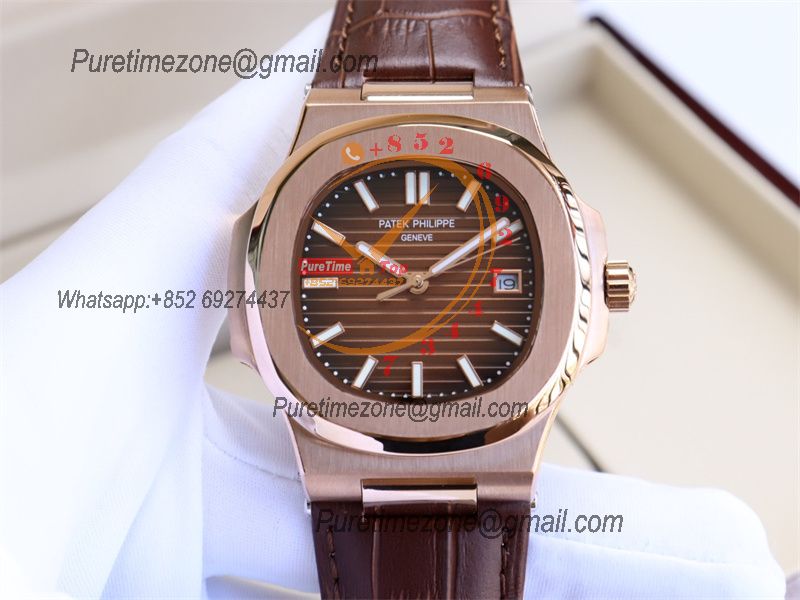 Special Prices Nautilus 5711 A21J Automatic Mens Watch 40 RG Brown Dial Leather Strap CHS