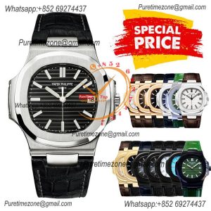 Special Prices Nautilus 5711 A21J Automatic Mens Watch 40 Steel Case Black Dial Leather Strap CHS $96.00 $80.00