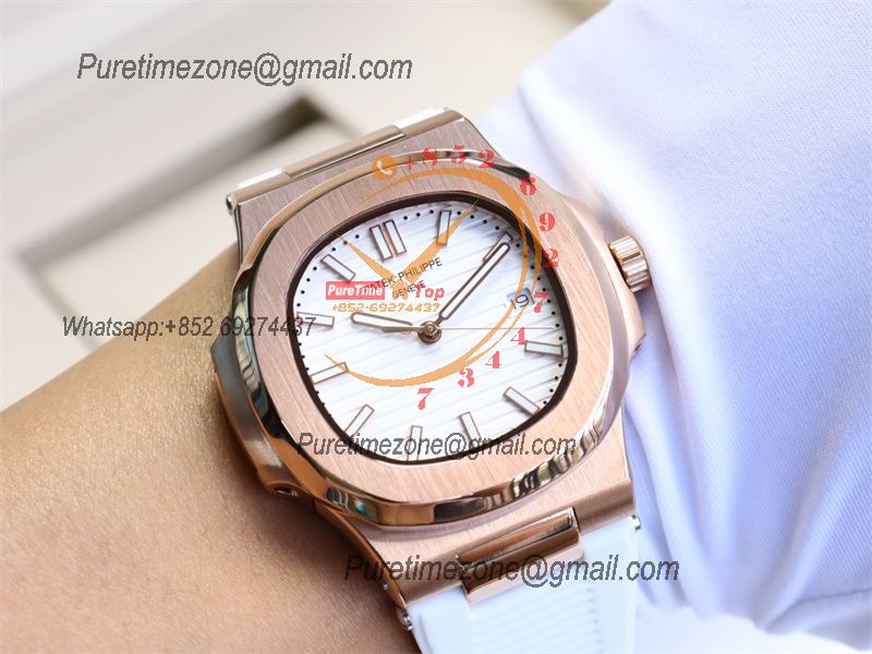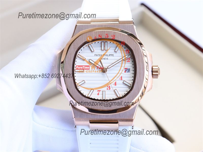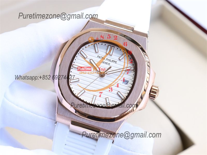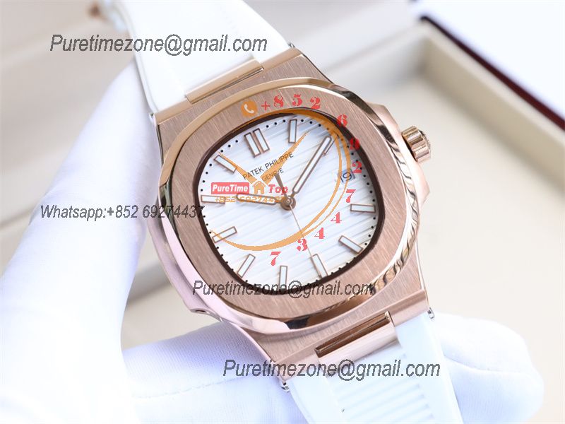 Special Prices Nautilus 5711 A21J Automatic Mens Watch 40 RG White Dial Rubber Strap CHS