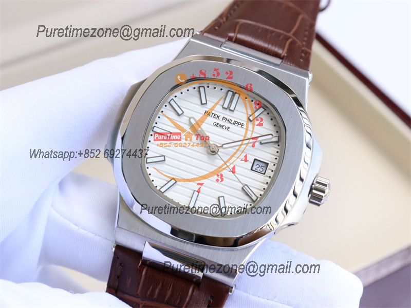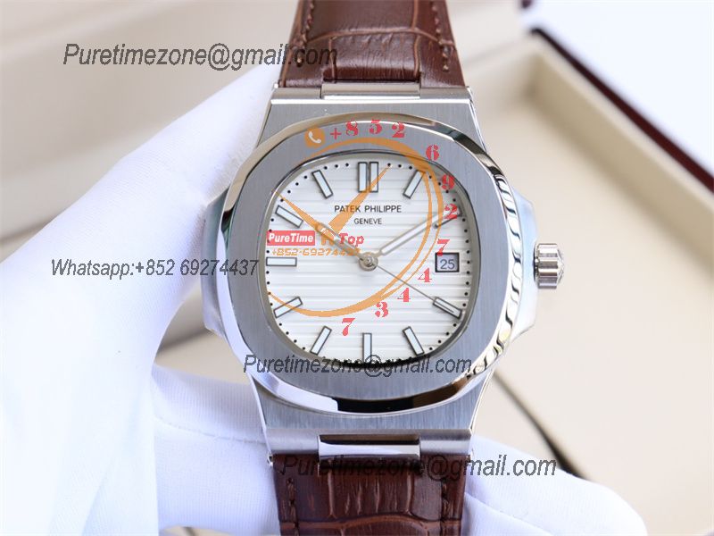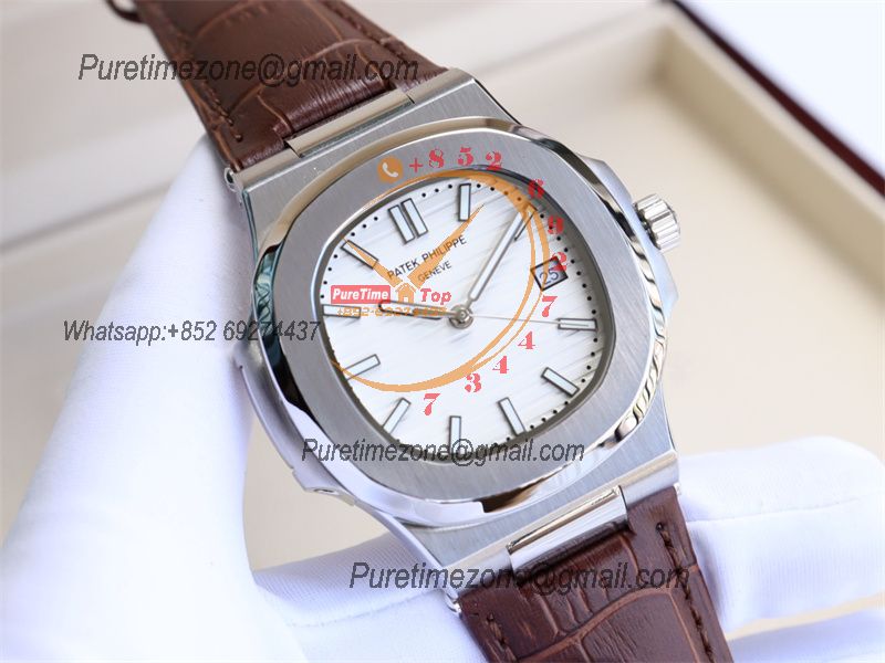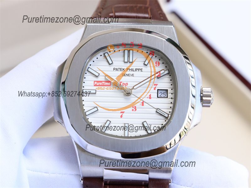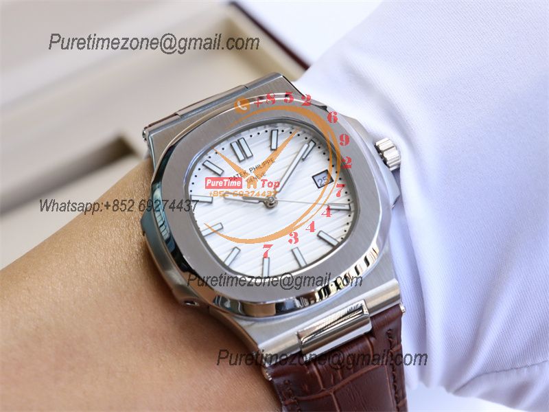Special Prices Nautilus 5711 A21J Automatic Mens Watch 40 Steel Case White Dial Leather Strap CHS