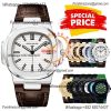 Special Prices Nautilus 5711 A21J Automatic Mens Watch 40 Steel Case White Dial Leather Strap CHS