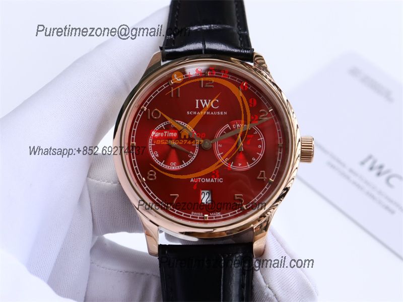 Home Special Offers Special Prices Portugieser A21j Automatic Power Reserve Mens Watch RG Red Dial Leather Strap CHS