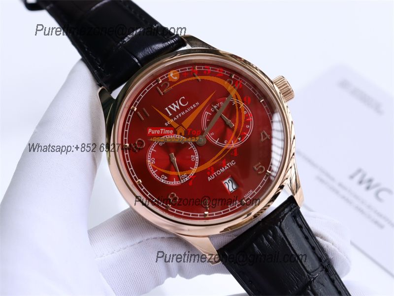 Special Prices Portugieser A21j Automatic Power Reserve Mens Watch RG Red Dial Leather Strap CHS