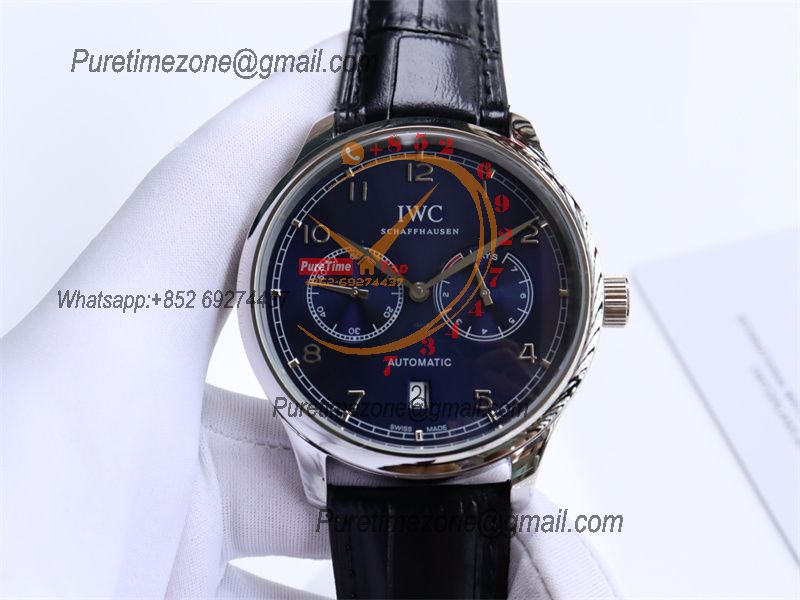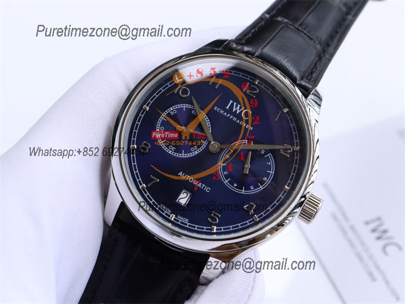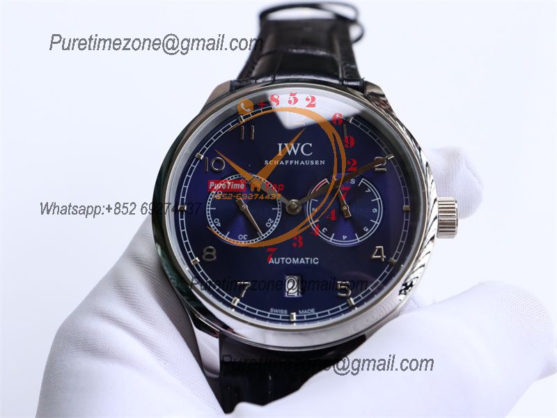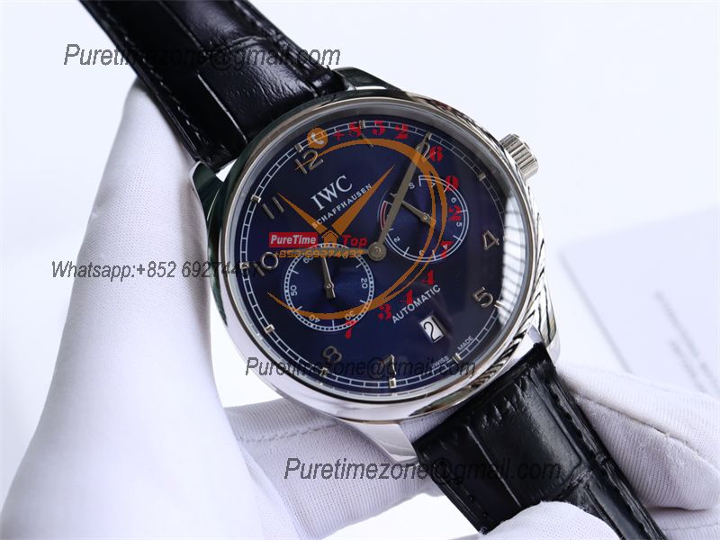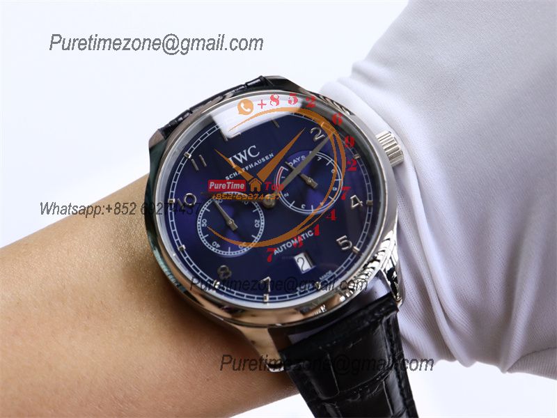 Special Prices Portugieser A21j Automatic Power Reserve Mens Watch SS Blue Dial Leather Strap CHS