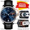 Special Prices Portugieser A21j Automatic Power Reserve Mens Watch SS Blue Dial Leather Strap CHS