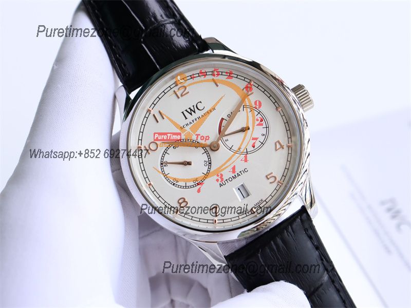 Special Prices Portugieser A21j Automatic Power Reserve Mens Watch Steel Case White Dial Leather Strap CHS