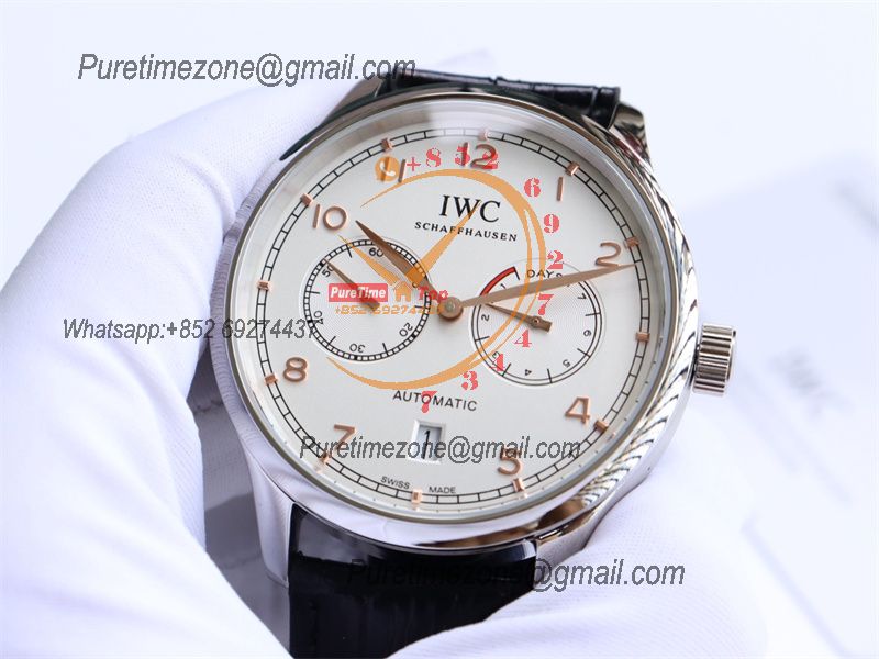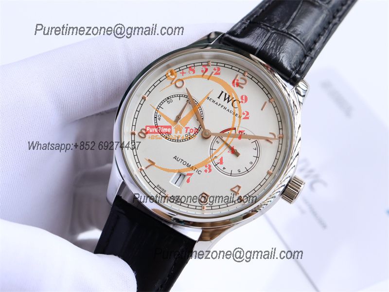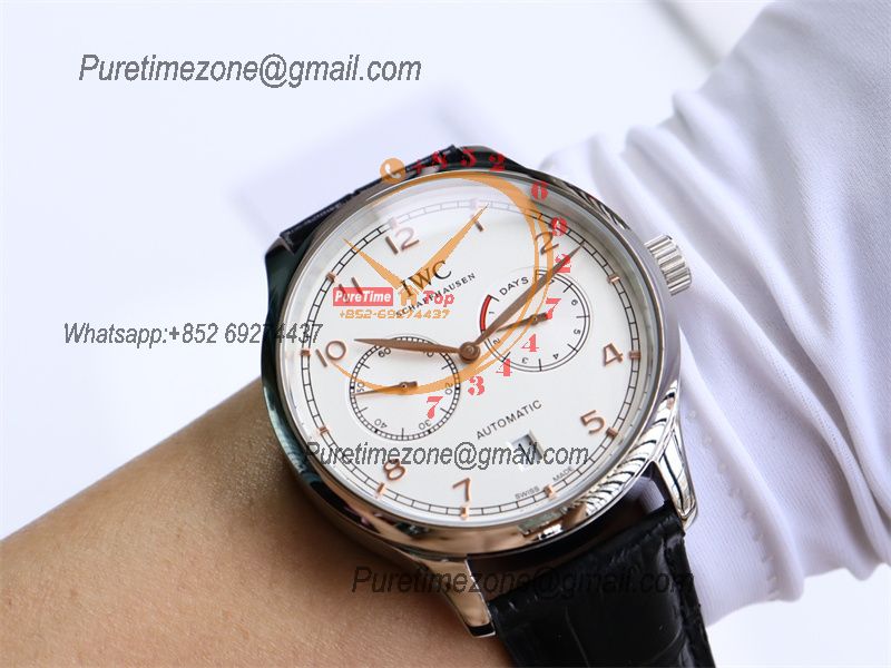 Home Special Offers Special Prices Portugieser A21j Automatic Power Reserve Mens Watch Steel Case White Dial Leather Strap CHS