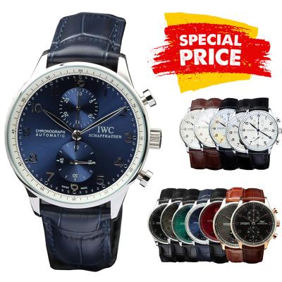 Special Prices Portugieser Japan Quartz Chronograph Mens Watch 40mm Steel Case Blue Dial Leather Strap CHS