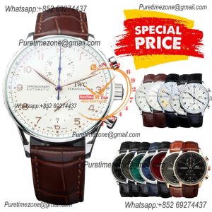 Special Prices Portugieser Japan Quartz Chronograph Mens Watch 40mm Steel Case White Dial Leather Strap CHS $96.00 $80.00