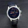 Special Prices Portugieser Japan Quartz Chronograph Mens Watch 40mm Steel Case Blue Dial Leather Strap CHS