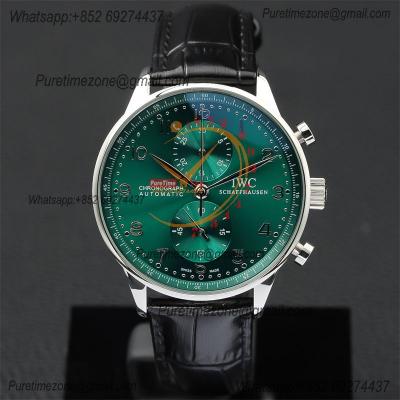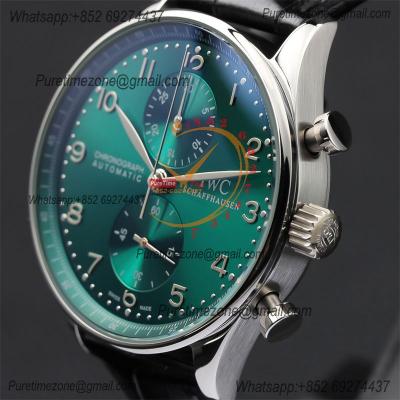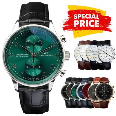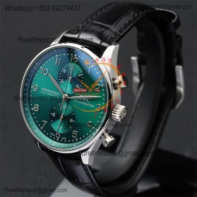 Special Prices Portugieser Japan Quartz Chronograph Mens Watch 40mm Steel Case Green Dial Leather Strap CHS