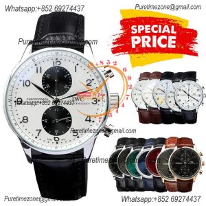 Special Prices Portugieser Japan Quartz Chronograph Mens Watch 40mm Steel Case White Black Dial Leather Strap CHS $96.00 $80.00
