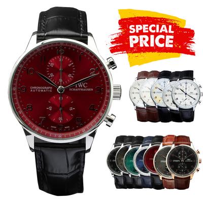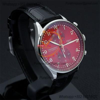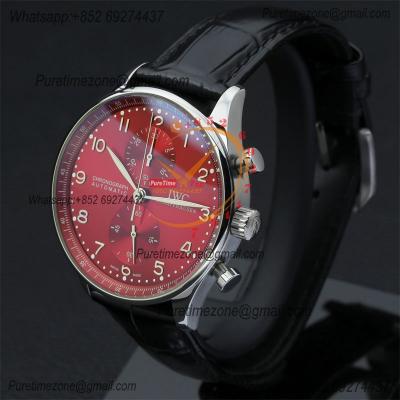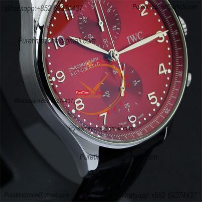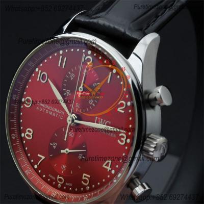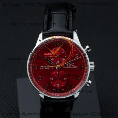 Special Prices Portugieser Japan Quartz Chronograph Mens Watch 40mm Steel Case Red Dial Leather Strap CHS