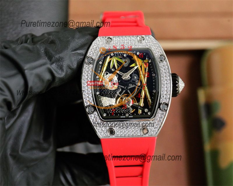 Special Prices RM26-02 Miyota Automatic Mens Watch RMF Diamond Case Panda Dial Red Rubber CHS