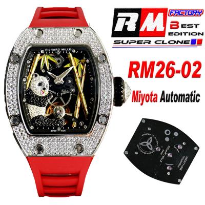 Home Richard Mille Special Prices RM26-02 Miyota Automatic Mens Watch RMF Diamond Case Panda Dial Red Rubber CHS