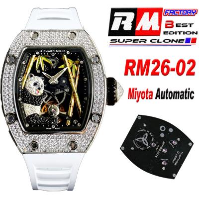 Home Richard Mille Special Prices RM26-02 Miyota Automatic Mens Watch RMF Diamond Case Panda Dial White Rubber CHS