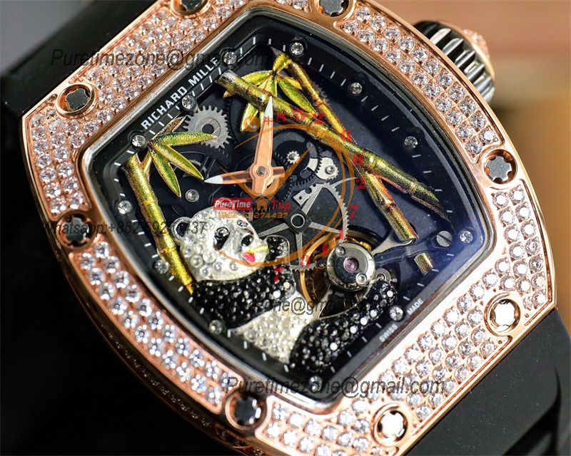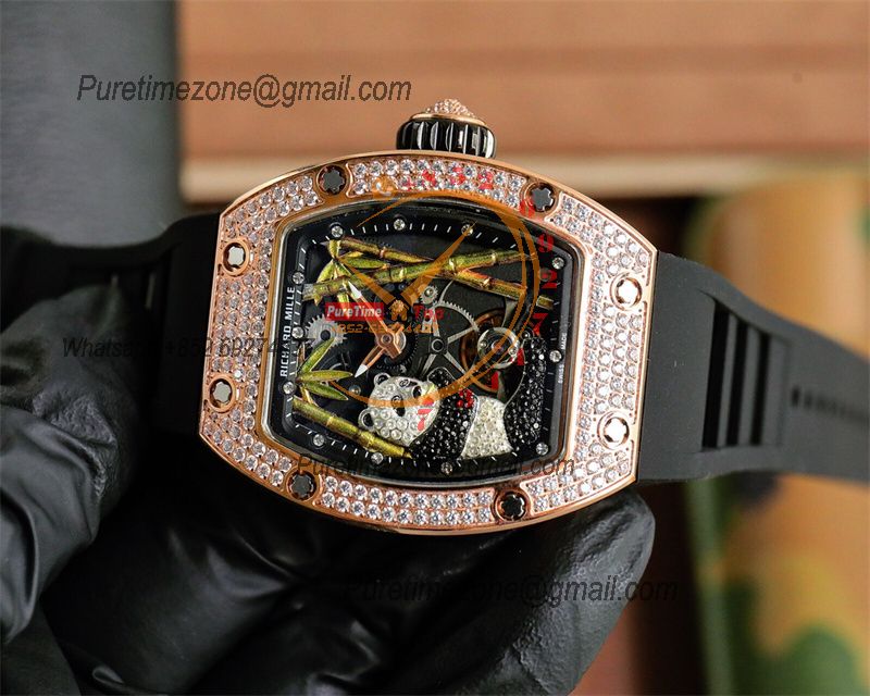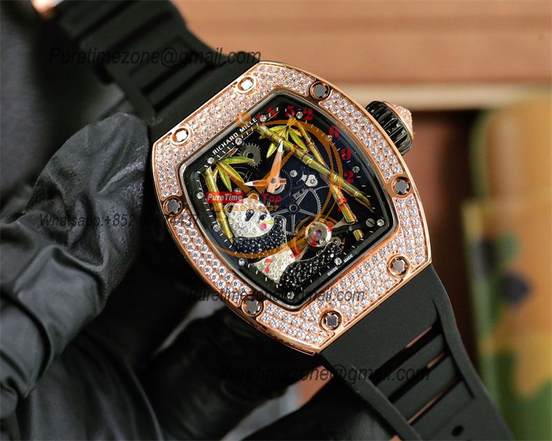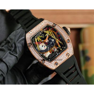 Special Prices RM26-02 Miyota Automatic Mens Watch RMF RG Diamond Case Panda Dial Black Rubber CHS