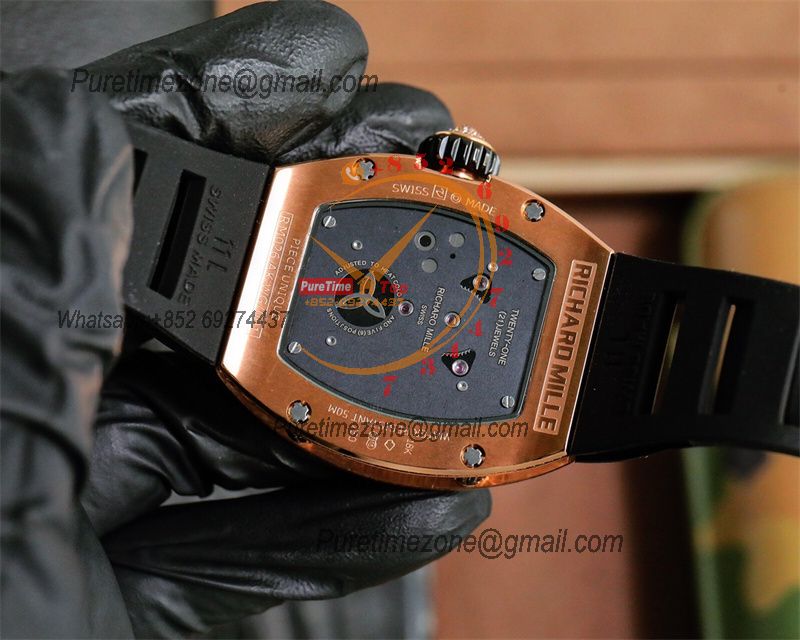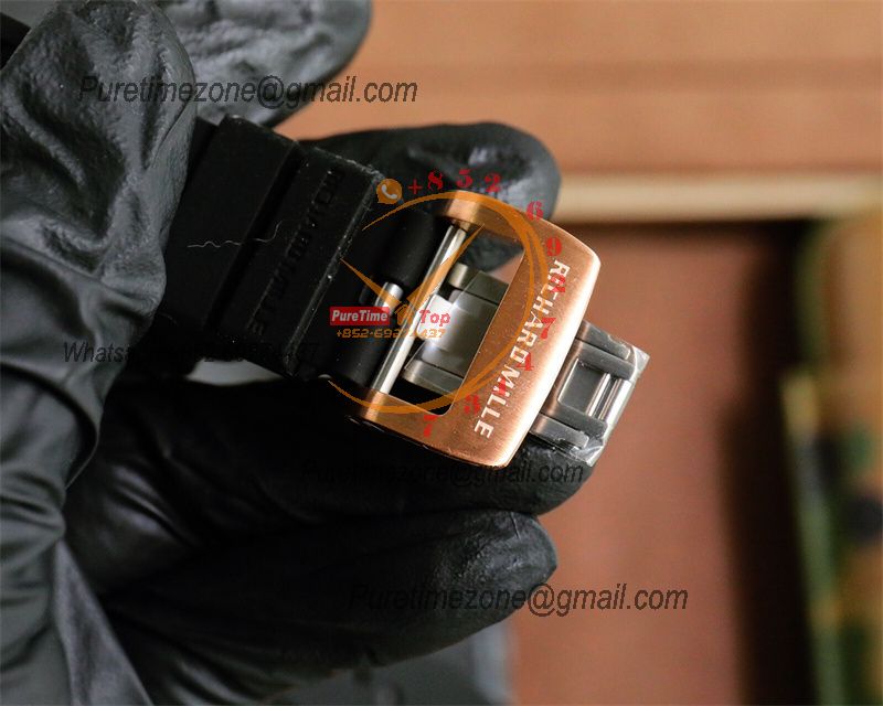 RM011 Felipe Massa A7750 Automatic Chronograph Mens Watch RMF Best Edition RG Black Dial White Rubber Strap CHS