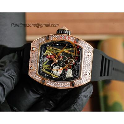 RM12-01 José Balvin Automatic Tourbillon Mens Watch RMF Carbon Fiber Skeleton Dial All Black Rubber Strap CHS AAA