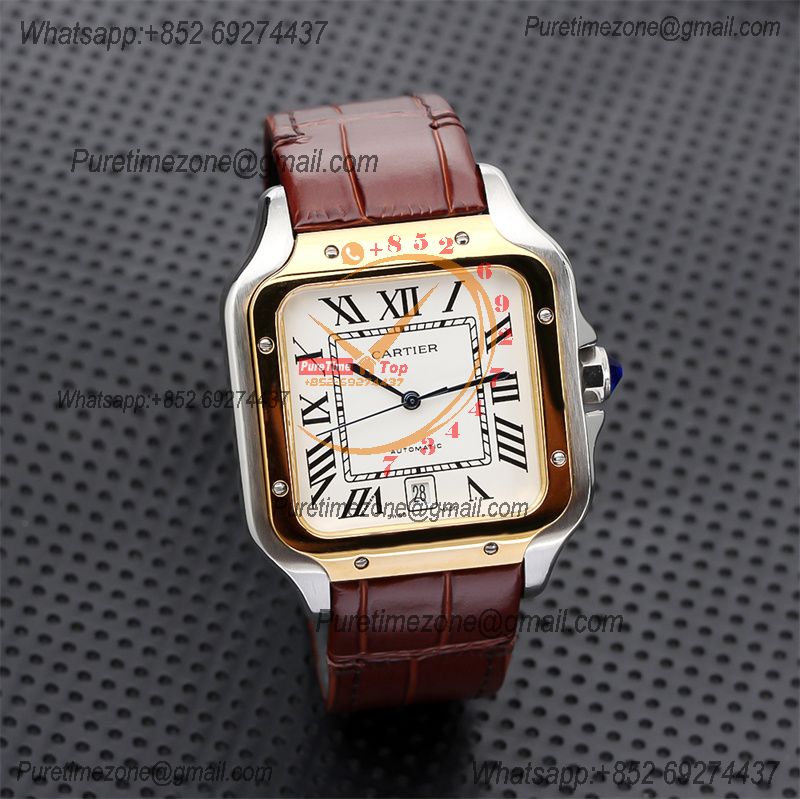 Special Prices Santos Lager Model 40mm A21j Automatic Mens Watch YG White Dial Brown Leather Strap CHS