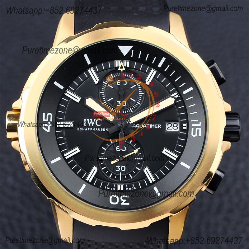 Special Prices Schaffhaseun Aquatimer Japan Quartz Chronograph Mens Watch 40 RG Black Dial Rubber Strap CHS