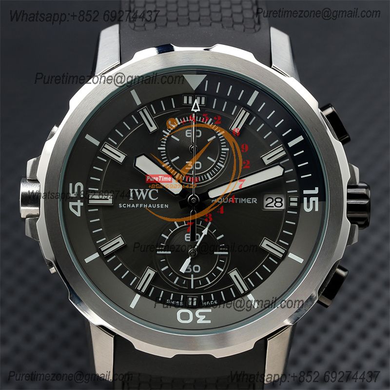 Special Prices Schaffhaseun Aquatimer Japan Quartz Chronograph Mens Watch 40 SS Gray Dial Rubber Strap CHS