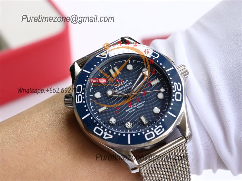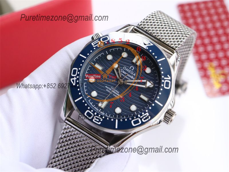 Special Prices Seamaster Diver 300M A21J Automatic Mens Watch 42 Ceramics Bezel Blue Dial Mesh Bracelet CHS