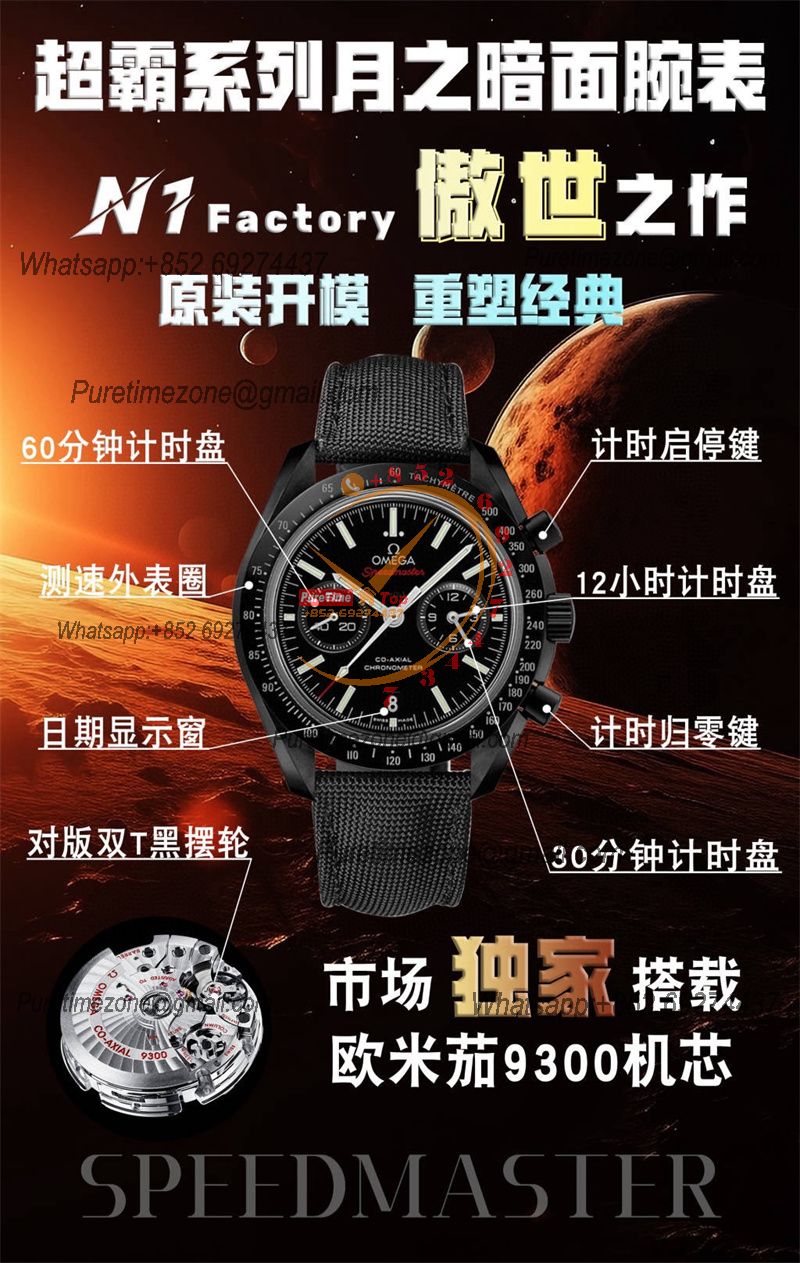Home OMG Speedmaster “Dark Side of The Moon” Real Ceramic A9300 Automatic Mens Watch Best Edition N1F 44.25 Black Dial Nylon CHS