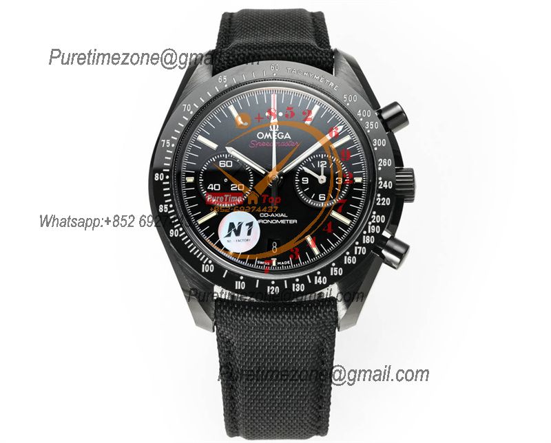 Speedmaster “Dark Side of The Moon” Real Ceramic A9300 Automatic Mens Watch Best Edition N1F 44.25 Black Dial Nylon CHS