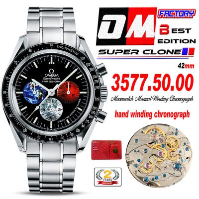 Speedmaster Moonwatch 3577.50.00 Manual Winding Chronograph Mens Watch Best Edition OMF Black Dial SS Bracelet CHS