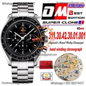 Speedmaster MoonWatch Professional Chronograph Manual-Winding Mens Watch Best Edition OMF Black Dial SS Bracelet CHS