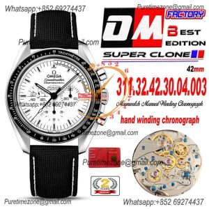 Speedmaster Moonwatch Silver Snoopy Anniversary Manual Winding Chrono Mens Watch Best Edition OMF White Dial Nylon CHS $528.00 $440.00