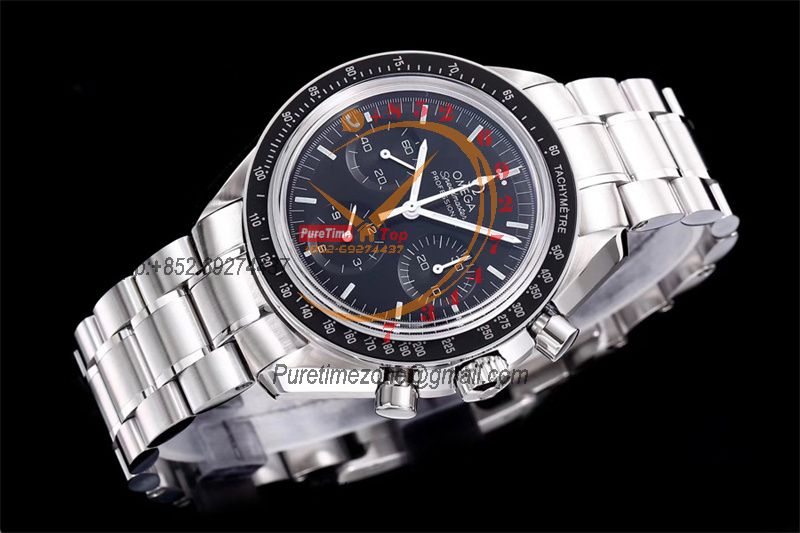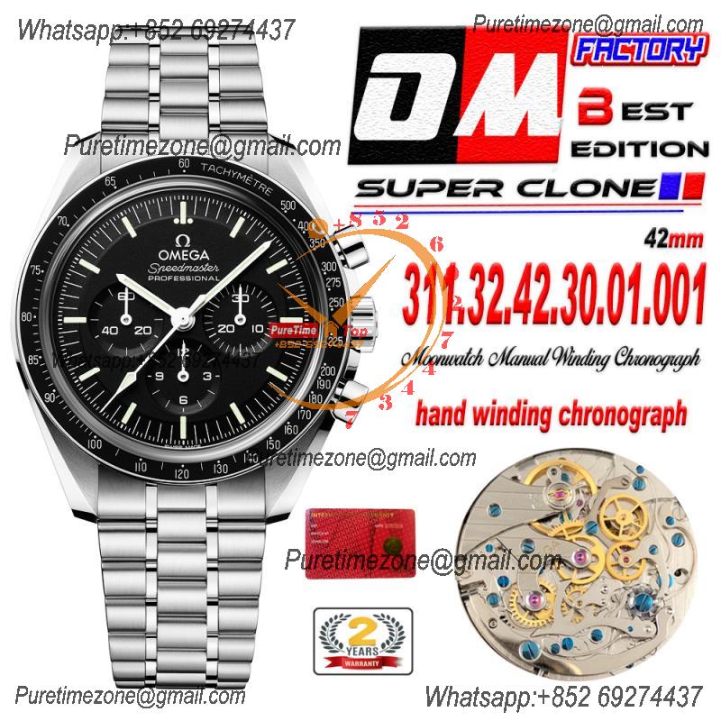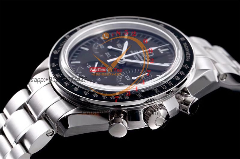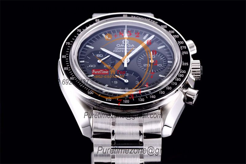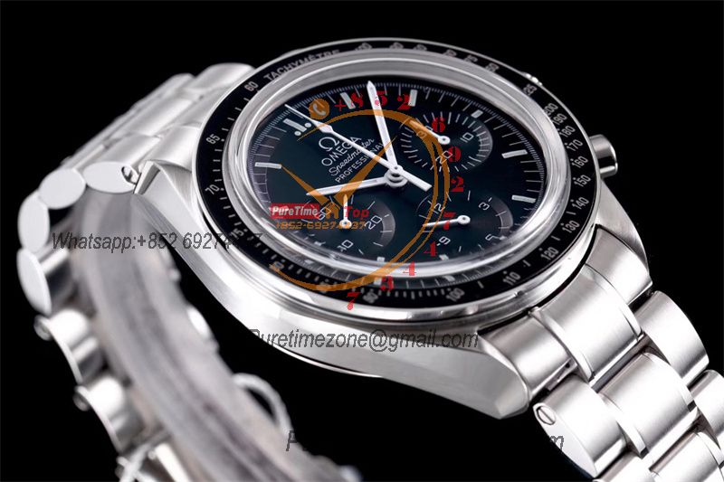 Home OMG Speedmaster MoonWatch Professional Chronograph Manual-Winding Mens Watch Best Edition OMF Black Dial SS Bracelet CHS
