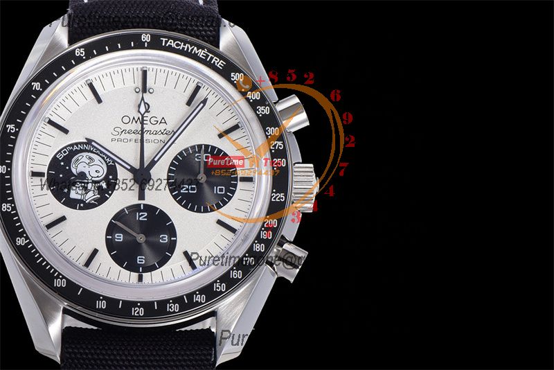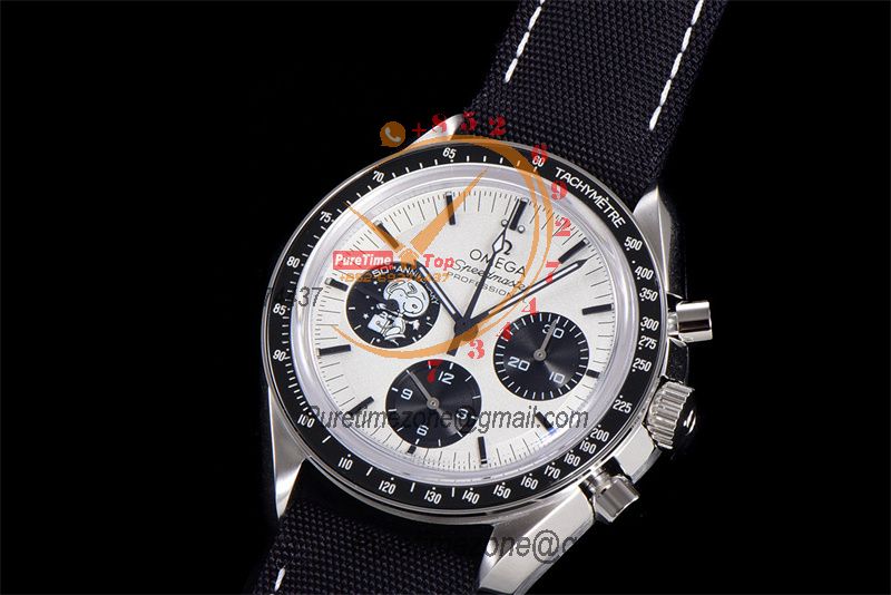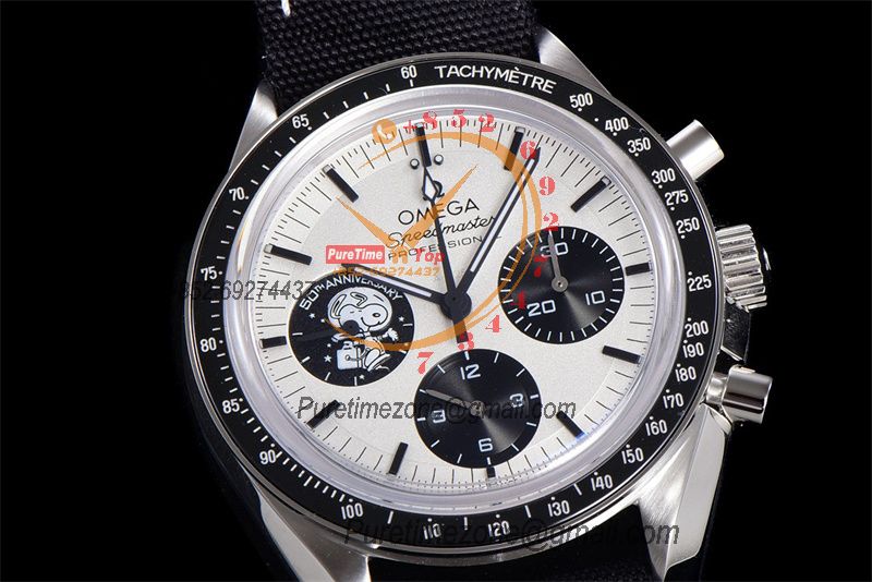 Home OMG Speedmaster Moonwatch Silver Snoopy Award Manual Winding Chrono Mens Watch Best Edition OMF Black Dial Nylon CHS